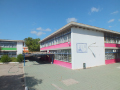 • Um edifício com 8 salas de aula, 2 casas de banho para alunos, 1 casa de banho para adultos e 1 casa de banho para deficientes, 1 sala de professores, 2 gabinetes, 1 arrecadação e 1 biblioteca.