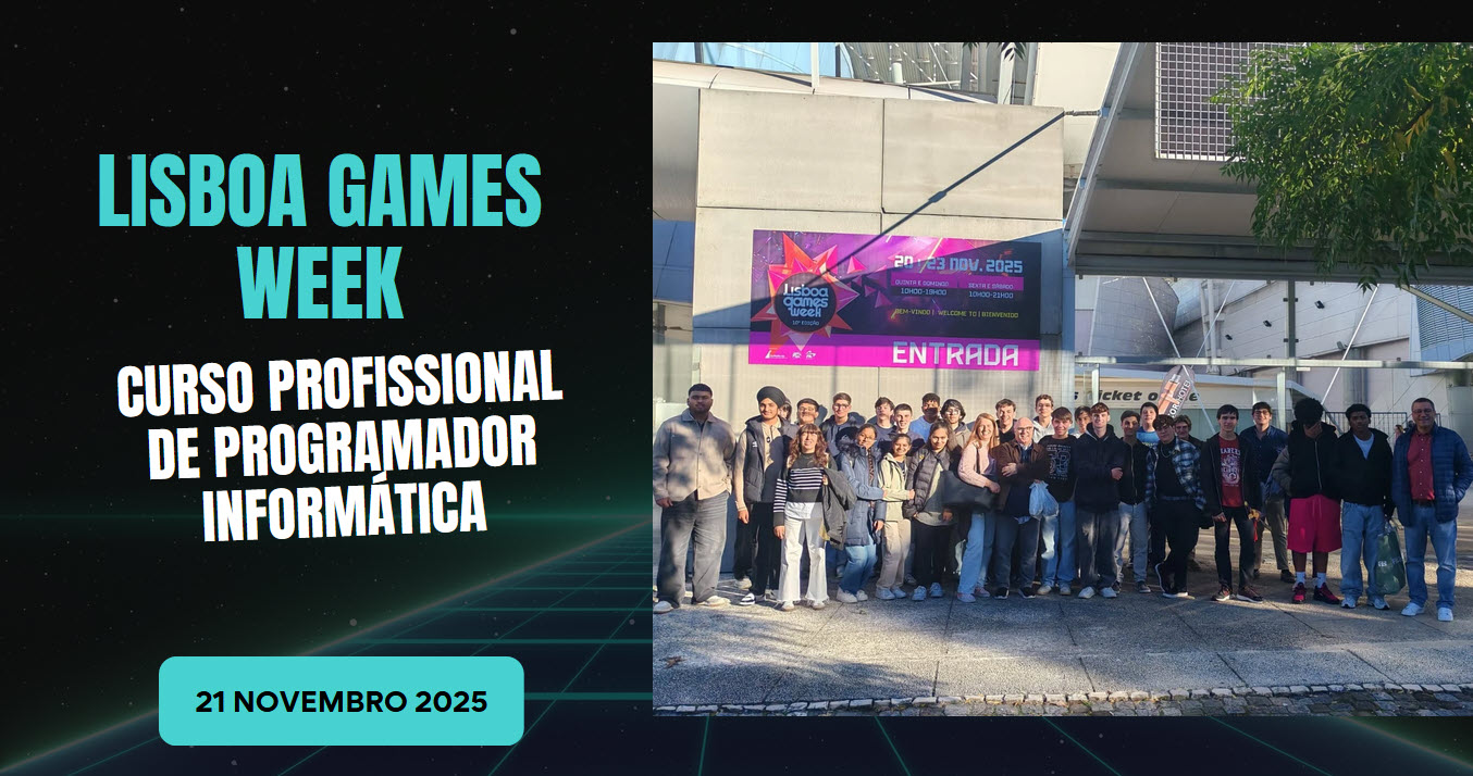 No passado dia 21 de novembro, os alunos do Curso Profissional de Programador de Informática das turmas 10ºC PI, 11ºC PI e 12ºC PI participaram numa experiência formativa única no âmbito da formação em contexto real, integrada na Lisboa Games Week, o maior evento nacional dedicado aos videojogos, tecnologia e inovação digital.
