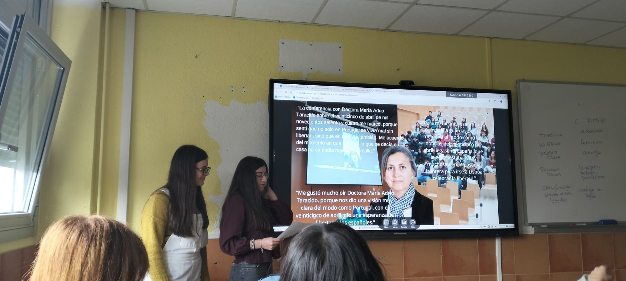 Um dos pontos altos foi a apresentação, pelas alunas portuguesas, da experiência de videoconferência sobre o 25 de Abril com a deputada Dra. María Adrio Taracido, bem como a partilha sobre a sua escola e os projetos em desenvolvimento. Houve também troca de livros em português e espanhol, reforçando laços e promovendo o gosto pela leitura.