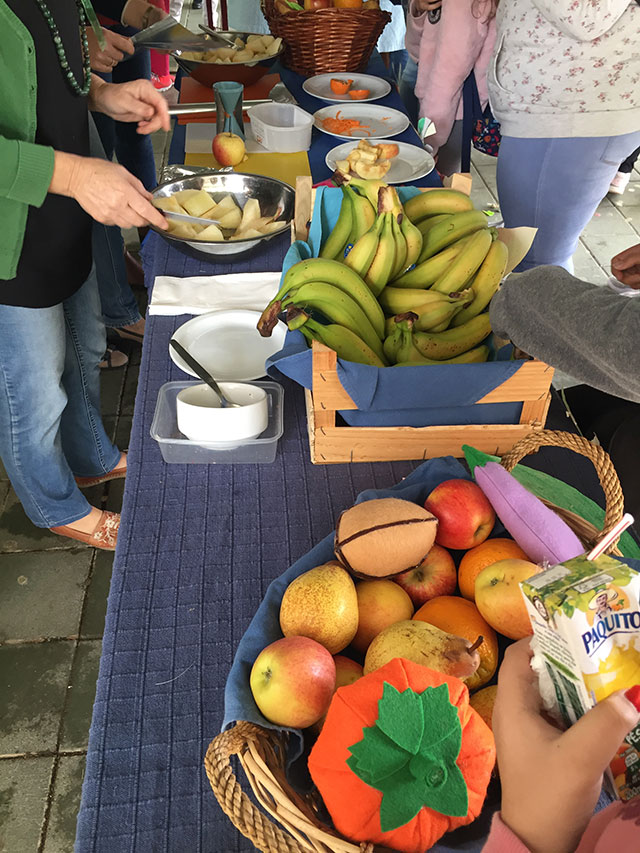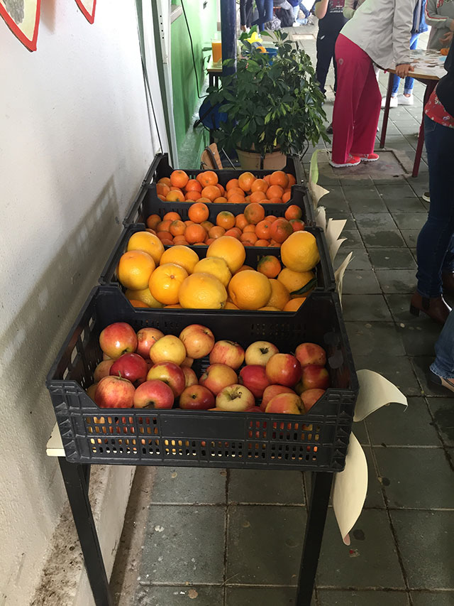 Foi feita a distribuição de fruta variada (da época) aos alunos da escola e a adesão foi muito positiva.