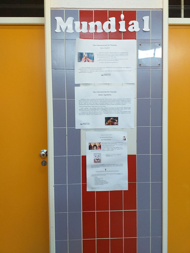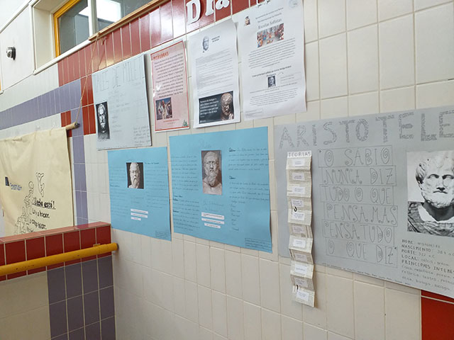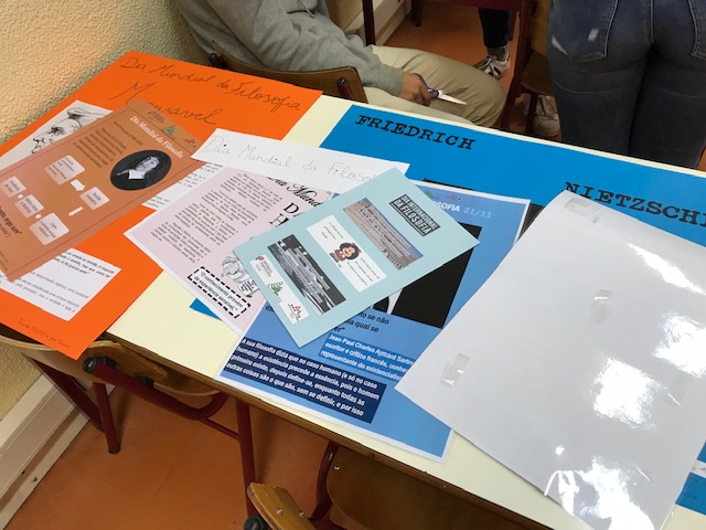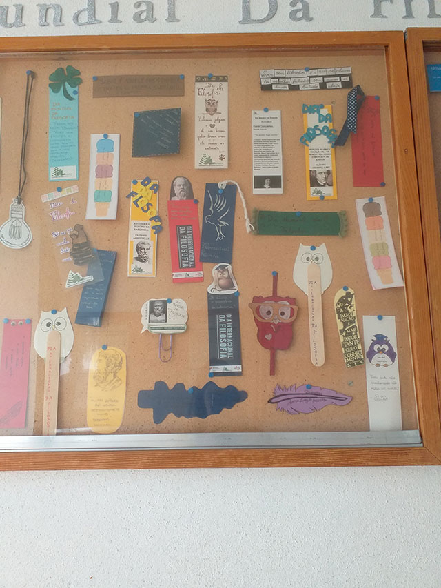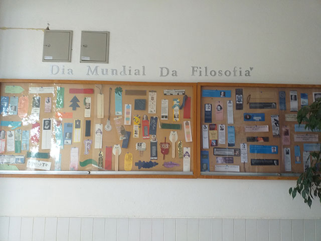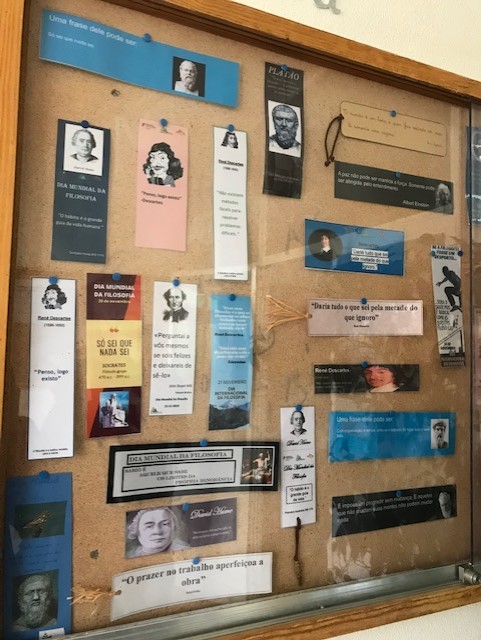 No dia 21 de novembro, a nossa escola comemorou o Dia Mundial da Filosofia. A atividade mobilizou muito positivamente todos os alunos de Filosofia através da construção de cartazes, de marcadores de livros, de outros trabalhos e da discussão, em sala de aula, de diferentes temáticas atuais.