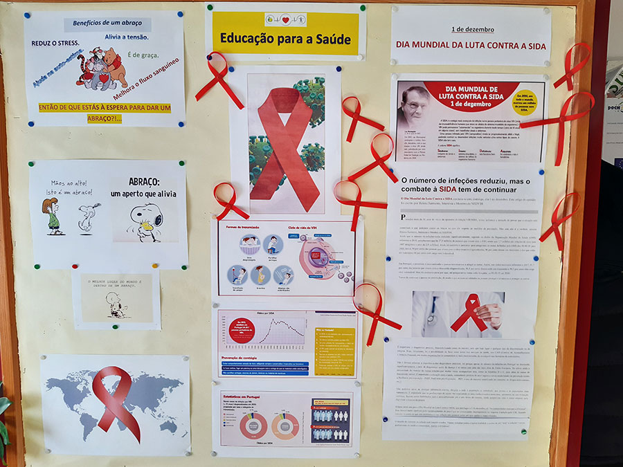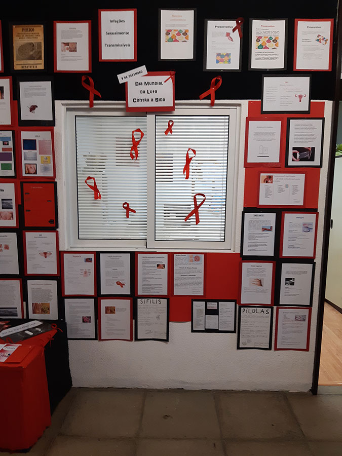 No âmbito da comemoração do Dia Mundial da Luta Contra a SIDA que se assinala a 1 de dezembro, os alunos do 9º ano e da disciplina de Biologia do 12ºA, elaboraram trabalhos que se encontram expostos no átrio do bloco B.