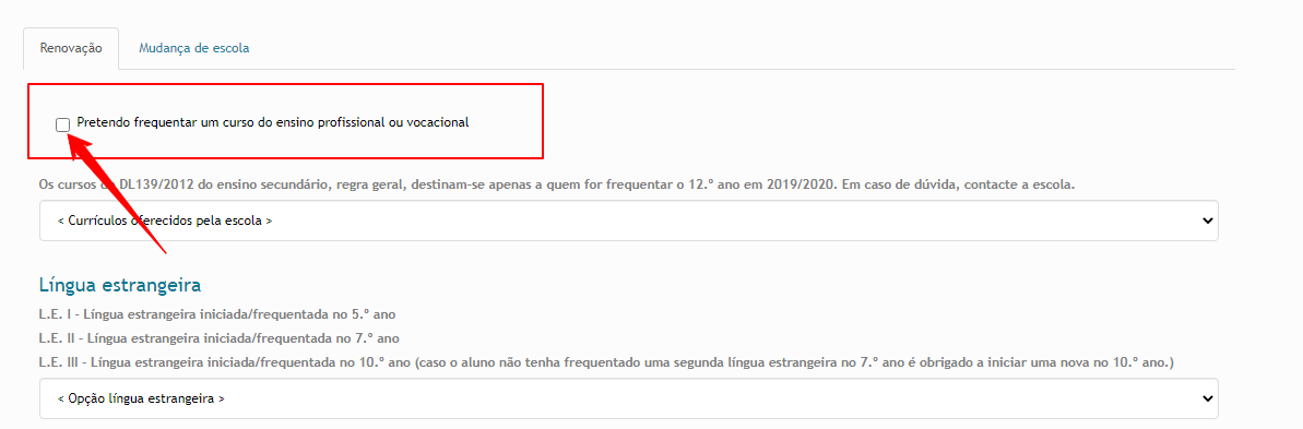 Os alunos dos Cursos Profissionais que vão para 11º Ano e 12º Ano, NÃO NECESSITAM DE RENOVAR A MATRICULA É AUTOMÁTICO (não têm a opção de renovação no INOVAR CONSULTA)!