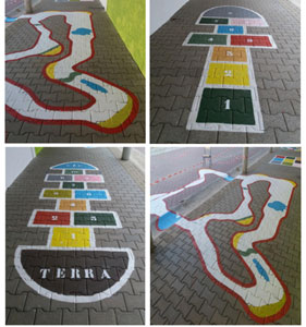 Vivemos numa época onde a tecnologia avança aceleradamente e dominam a nossa geração. Hoje em dia, raramente vemos crianças a brincarem na rua como antigamente, os próprios pais e famílias, de um modo geral, contribuem para que o futuro das crianças, muitas vezes, dependa das tecnologias. Os tempos livres de hoje passam-se de forma diferente do que acontecia há algumas décadas atrás. Os recreios das escolas raramente conhecem o traçado da "macaca" no chão e o girar dos piões (Zenhas, 2002). Grande parte destes jogos e brincadeiras tradicionais encantam e fazem parte do quotidiano de várias gerações de crianças. O maior problema reside no facto de, atualmente estarem a cair no esquecimento das pessoas devido às transformações do ambiente urbano, da influência da televisão e dos jogos eletrónicos. O poder da internet, nomeadamente das 3 novas tecnologias, tem vindo a provocar este mesmo esquecimento. Não nos podemos esquecer que o jogo contribui para o desenvolvimento integral da criança, nomeadamente nas áreas corporal, intelectual, afetiva e social. São muitos os ganhos nesses domínios, pelo que apenas se destacam os seguintes: solicitação e coordenação dos sentidos visuais, auditivo e quinestésico; desenvolvimento de diferentes destrezas, como, por exemplo, o equilíbrio, a velocidade, a força, a agilidade e a lateralidade; desenvolvimento de competências de atenção e de concentração; desenvolvimento de competências de antecipação e de rapidez e flexibilidade de reação; desenvolvimento da imaginação; apreensão lógica de dados físicos e matemáticos; reforço da autoestima; aquisição de aprendizagens significativas; promoção da cooperação e da entreajuda; desenvolvimento de competências de inter-relacionamento com os colegas; aceitação e respeito pelas regras. Os jogos são um instrumento privilegiado de educação, socialização e integração sócio motora, constituindo uma atividade extraordinariamente rica para a integração em grupo, orientação espacial, sentido rítmico e enriquecimento da linguagem corporal da criança (Almeida, 2014). A nossa proposta tem como objetivo principal a criação de espaços nos recreios onde hajam marcações para a execução de diferentes jogos, os quais serão praticados em algumas aulas, como forma de aprendizagem e de motivação para a sua prática informal durante as horas de recreio. Pretendemos assim, recuperar, recriar e incluir os jogos tradicionais nos recreios, reavivar as memórias e tradições antigas e procurar que permaneçam vivos nos recreios escolares. Muitas são as potencialidades educativas dos jogos lúdicos e são vários os contextos que permitem a sua operacionalização. Os recursos materiais para a sua execução são bastante acessíveis através da aquisição de materiais específicos de pintura (pincéis, rolos, fitas isolantes, moldes e tintas de variadas cores), bem como de recursos humanos para a implementação nos espaços de prática, contando com os alunos pertencentes ao Curso Profissional de Técnico de Desporto, pois já adquiriram competências na implementação de jogos lúdicos na Escola EB1/JI de Alpiarça.