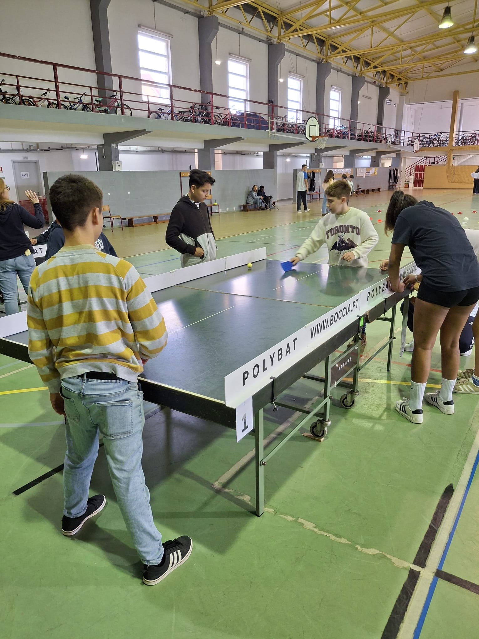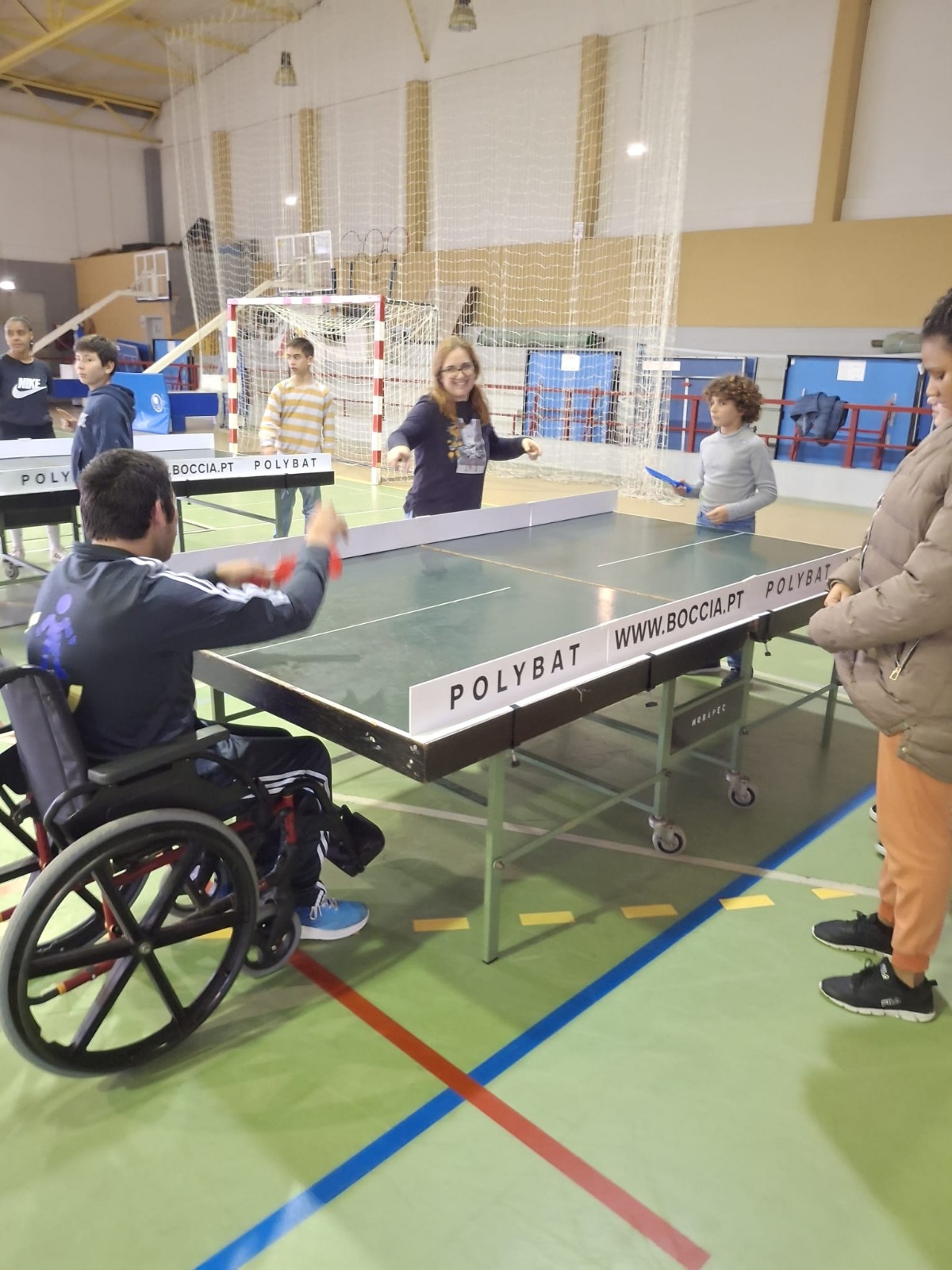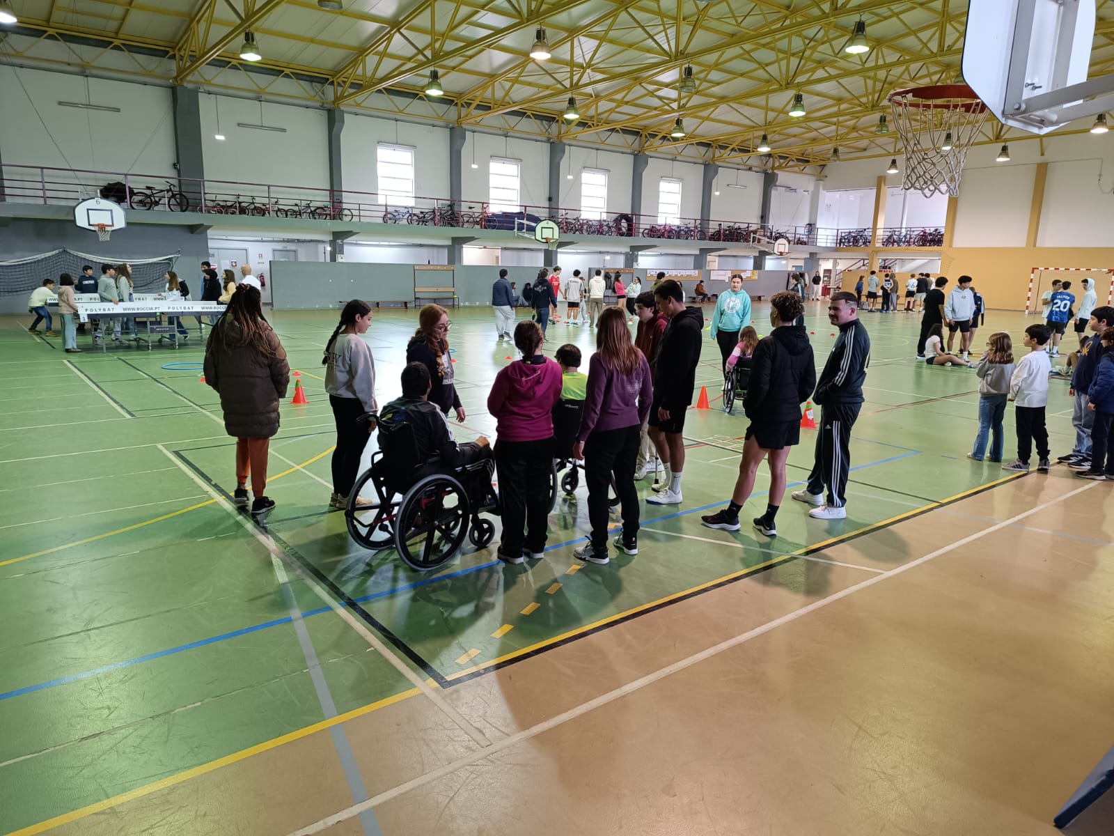 A tarde do passado dia 23 de Janeiro foi recheada de atividades diferenciadoras para os nossos alunos, professores, assistentes e convidados, onde puderam experimentar o Polybat, Slalom de Cadeira de Rodas, Percurso Vendados, Pintura Adaptada, Veste o meu Casaco apenas com um braço e Parede de Escalada.