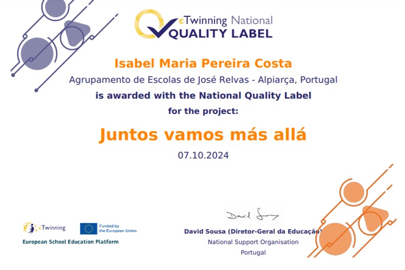 O projeto eTwinning "Juntos vamos más allá", desenvolvido pela professora Isabel Costa e pelos alunos de Espanhol das turmas 10.º A. 10.º B e 12.º B recebeu o Selo de Qualidade eTwinning Nacional 2024.
