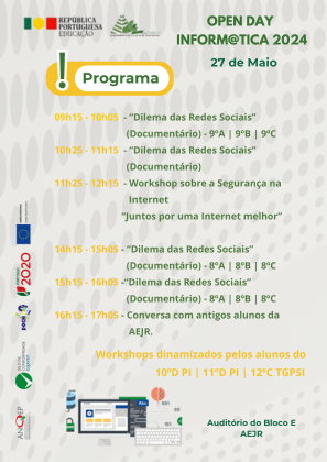 No dia, 27 de maio de 2024, professores e alunos dos Cursos Profissionais de Técnico de Gestão e Programação de Sistemas Informáticos e Programador de Informática , organizaram o muito aguardado "Open Day Inform@tica - 2024", um evento destinado a promover o interesse pela tecnologia e a informática entre os alunos.