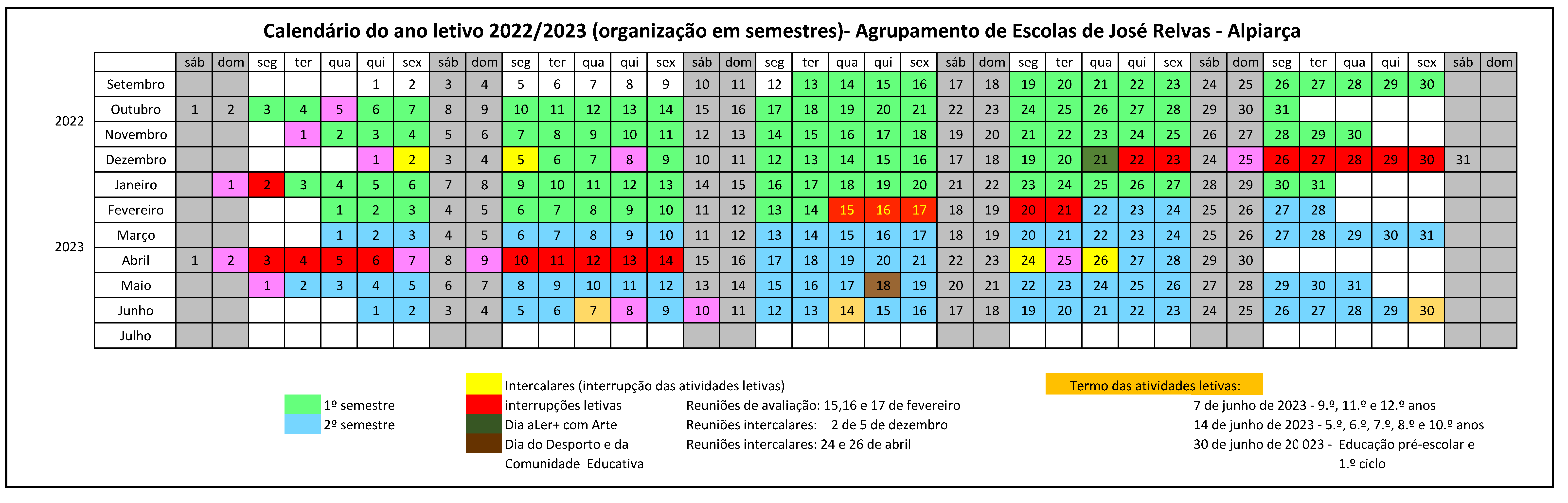 CALENDARIZAÇÃO ARRANQUE DO ANO LETIVO 2022-2023